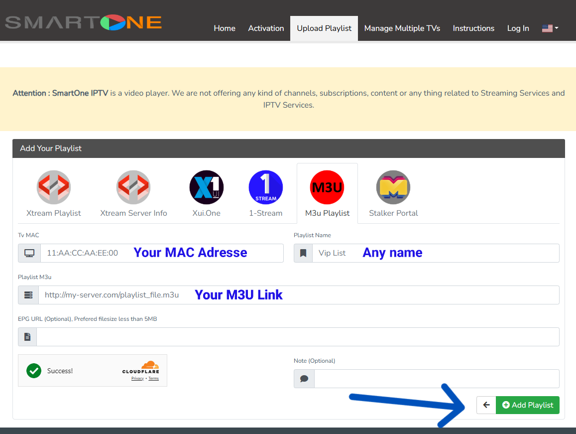 Add Playlist Using SmartOne Generator