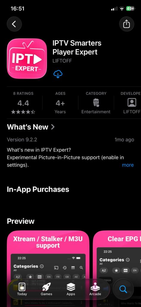 Install IPTV Smarters Expert from the Apple App Store (iOS)
